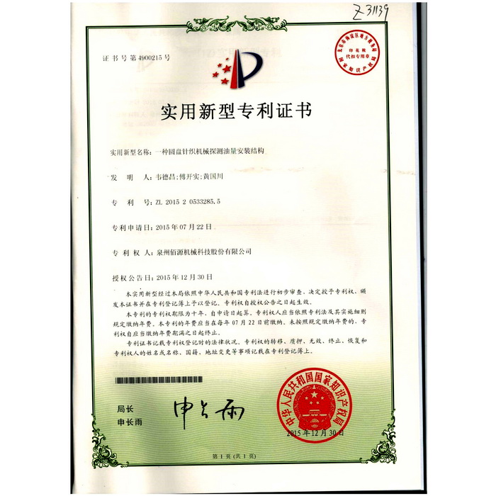 08一種圓盤針織機械探測油量安裝結(jié)構(gòu)