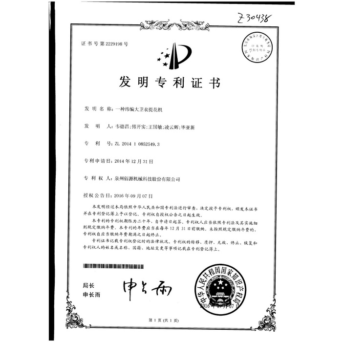 08發(fā)明-一種緯編大衛(wèi)衣提花機